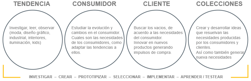 Trabajamos en conjunto con nuestros clientes de principio a fin, estamos presentes en toda la cadena de producción, nos preocupamos de saber las necesidades del consumidor final para lograr una colección diferenciadora y exitosa.
